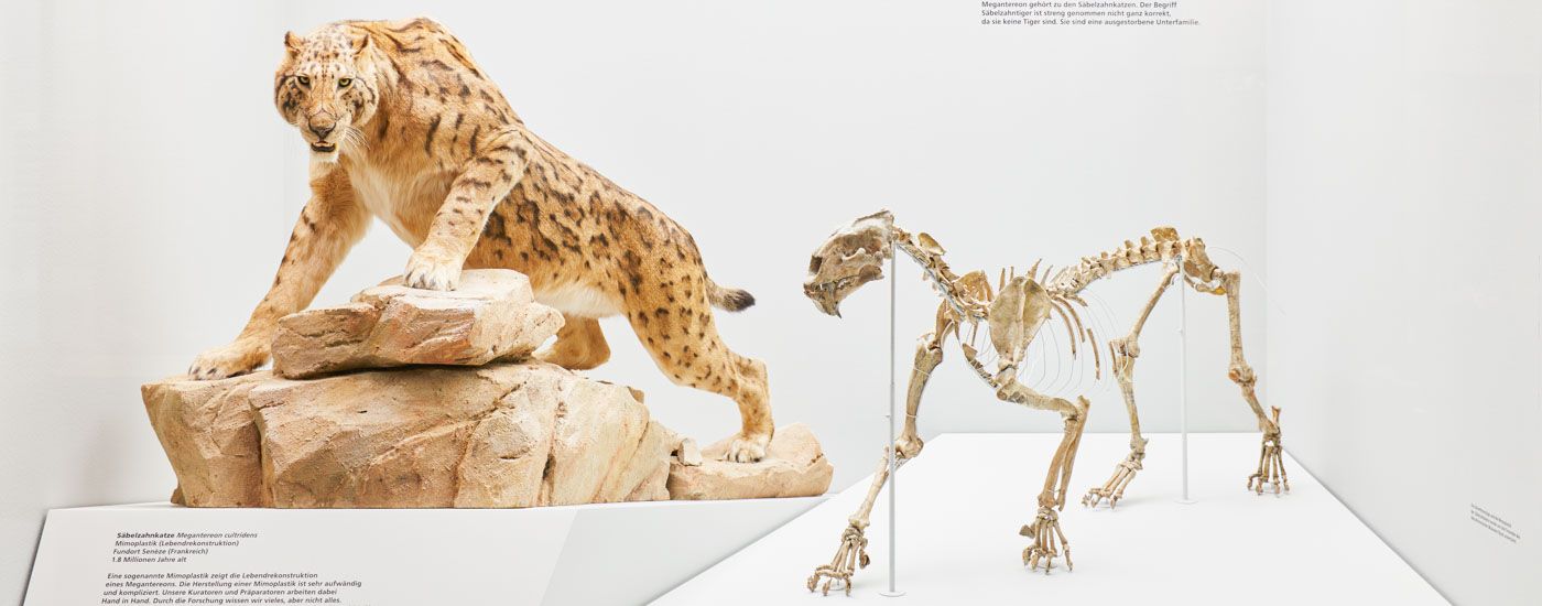 The diversity of life on our planet is evident not just from the almost immeasurable number of its forms, but also from the different ways in which they live. The saber-toothed cat Megantereon, which is on display in our exhibition but which has long since been extinct, was a powerful hunter. It was only able to use its long incisor teeth as blades to inflict a fatal blow, not as a weapon of attack.