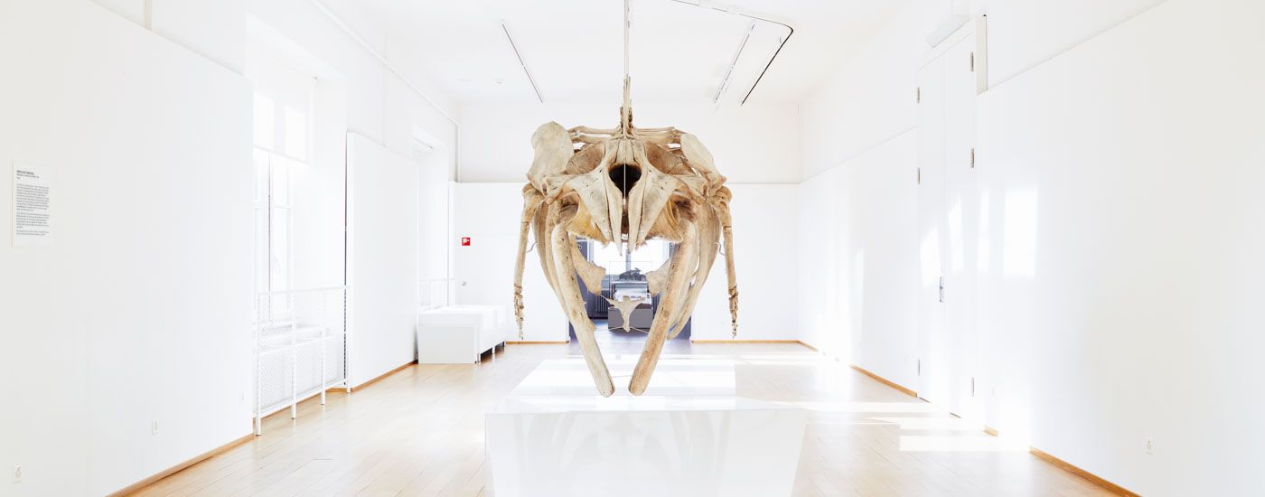 The permanent Whale & Fish exhibition offers a magical view not only over the rooftops of Basel, but also most importantly of the wonderfully presented skeleton of a minke whale. It lay for forty years in the collection room before finding its way into the exhibition. Another highlight is the life-sized model of a 6.8-metre-long python, complete with its original skeleton.
